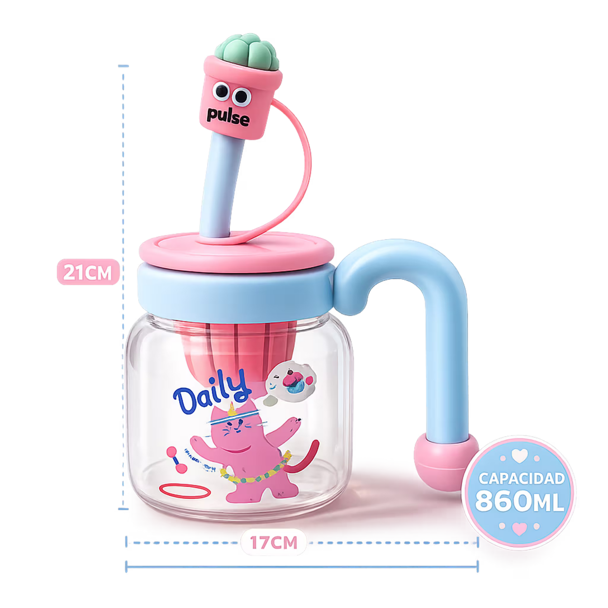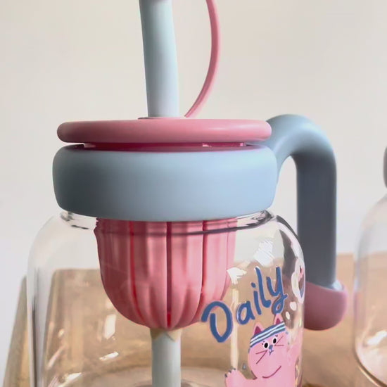 - 💧 Botella de vidrio para llevar: 750 ml de capacidad con pitillo, asa y tapa a prueba de fugas que mantiene tu bebida segura durante los viajes diarios