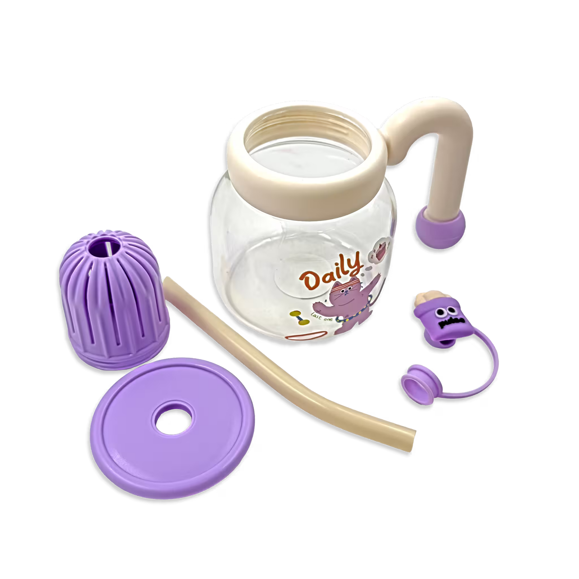 Botella de Vidrio 750ml con Pitillo e Infusor - Asa Portátil y Pata a Prueba de Fugas