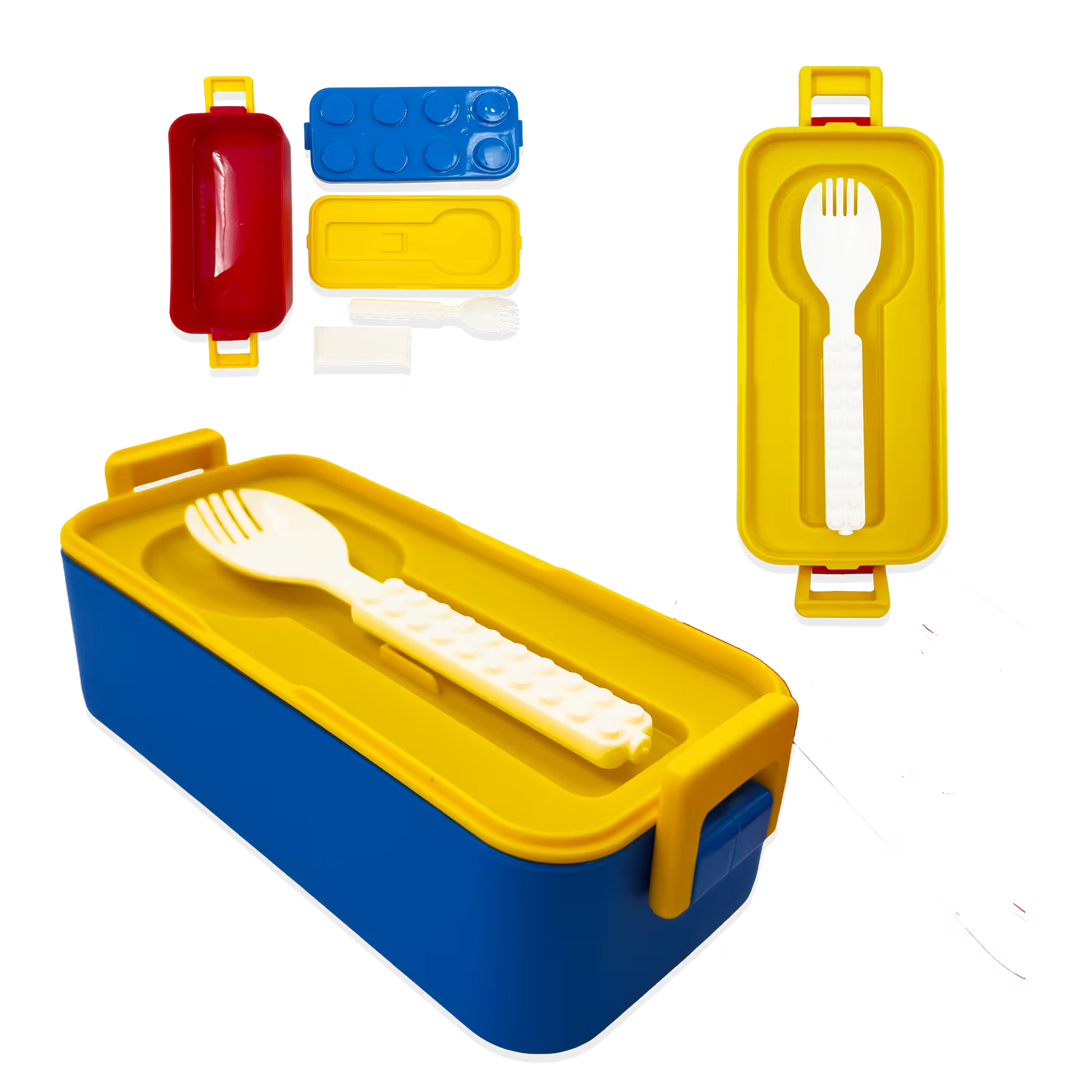 El separador deslizable es perfecto para mantener diferentes tipos de alimentos sin que se mezclen: frutas por un lado, sándwich por otro, o snacks separados. La cuchara incluida significa que nunca olvidarás tus cubiertos, y el diseño tipo Lego hace que llevar el almuerzo sea más divertido.