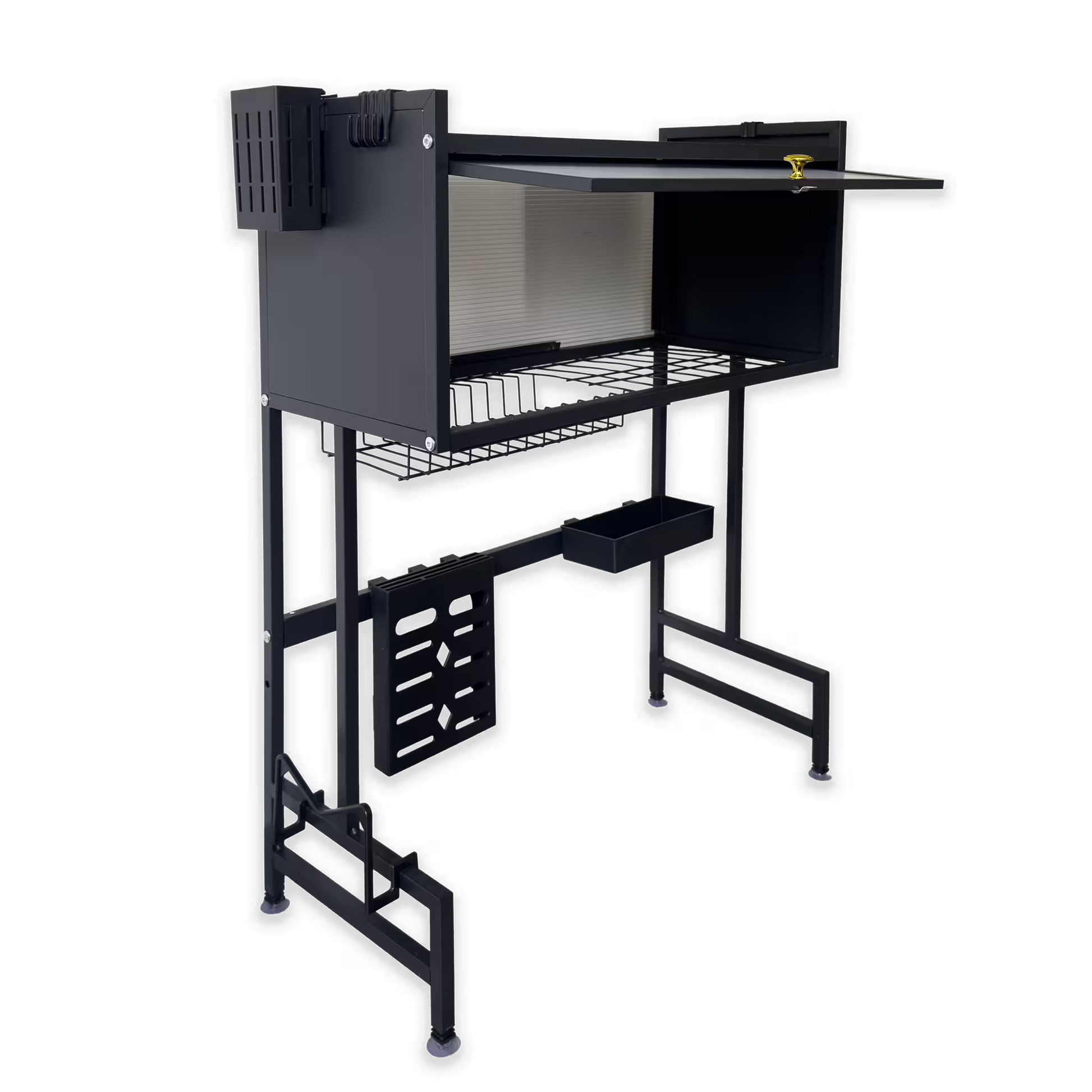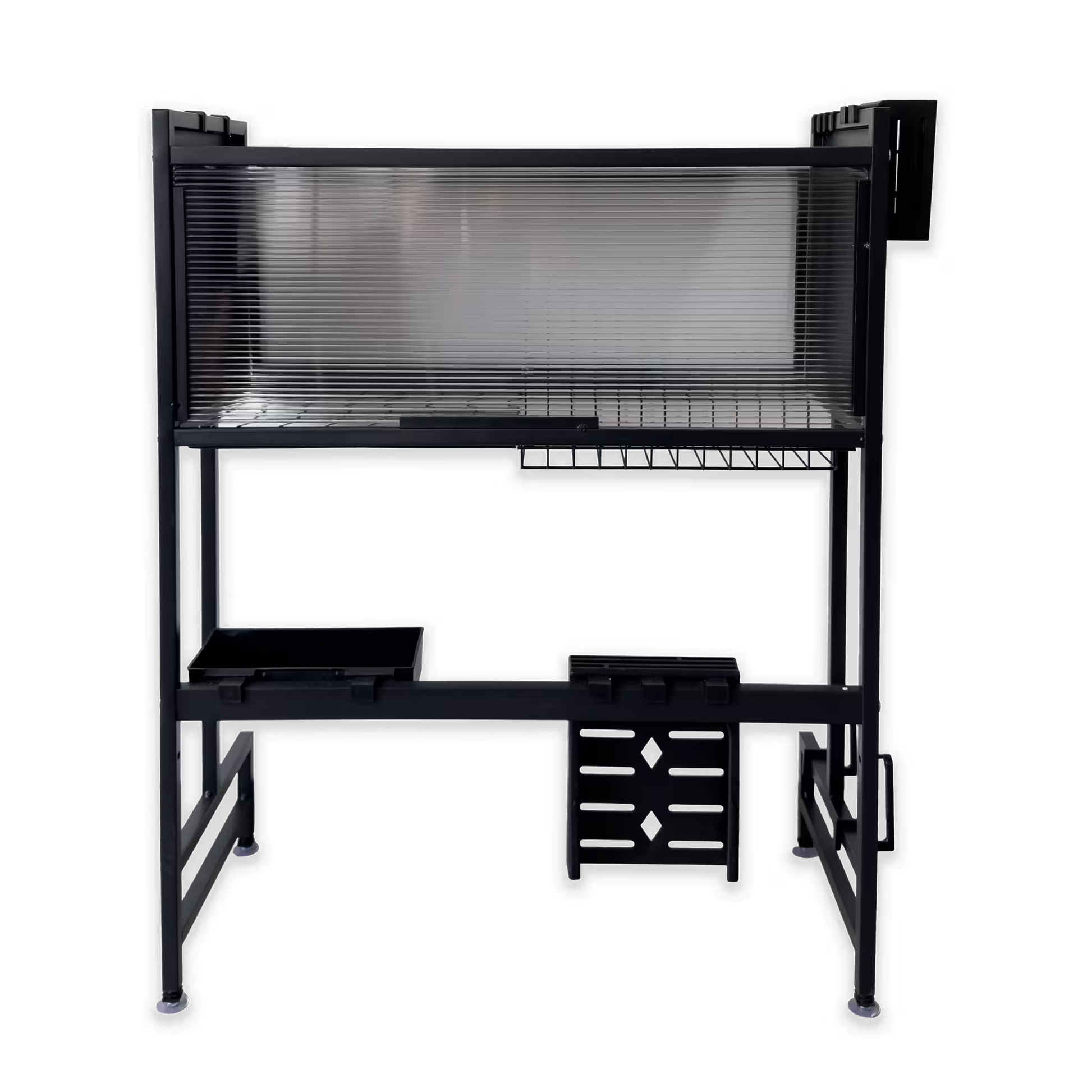 Este organizador vertical Kitchen Rack Premium libera por completo tu Mesón, aprovechando el espacio justo encima del lavaplatos.