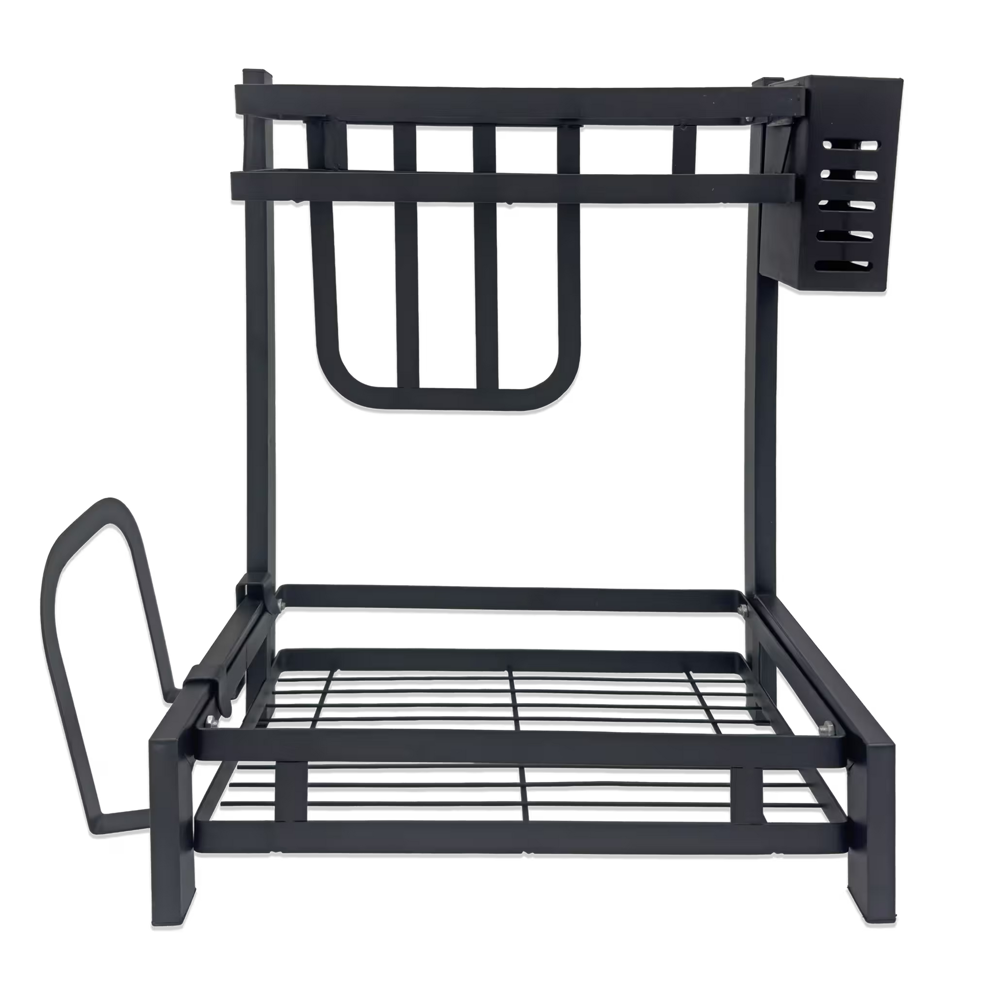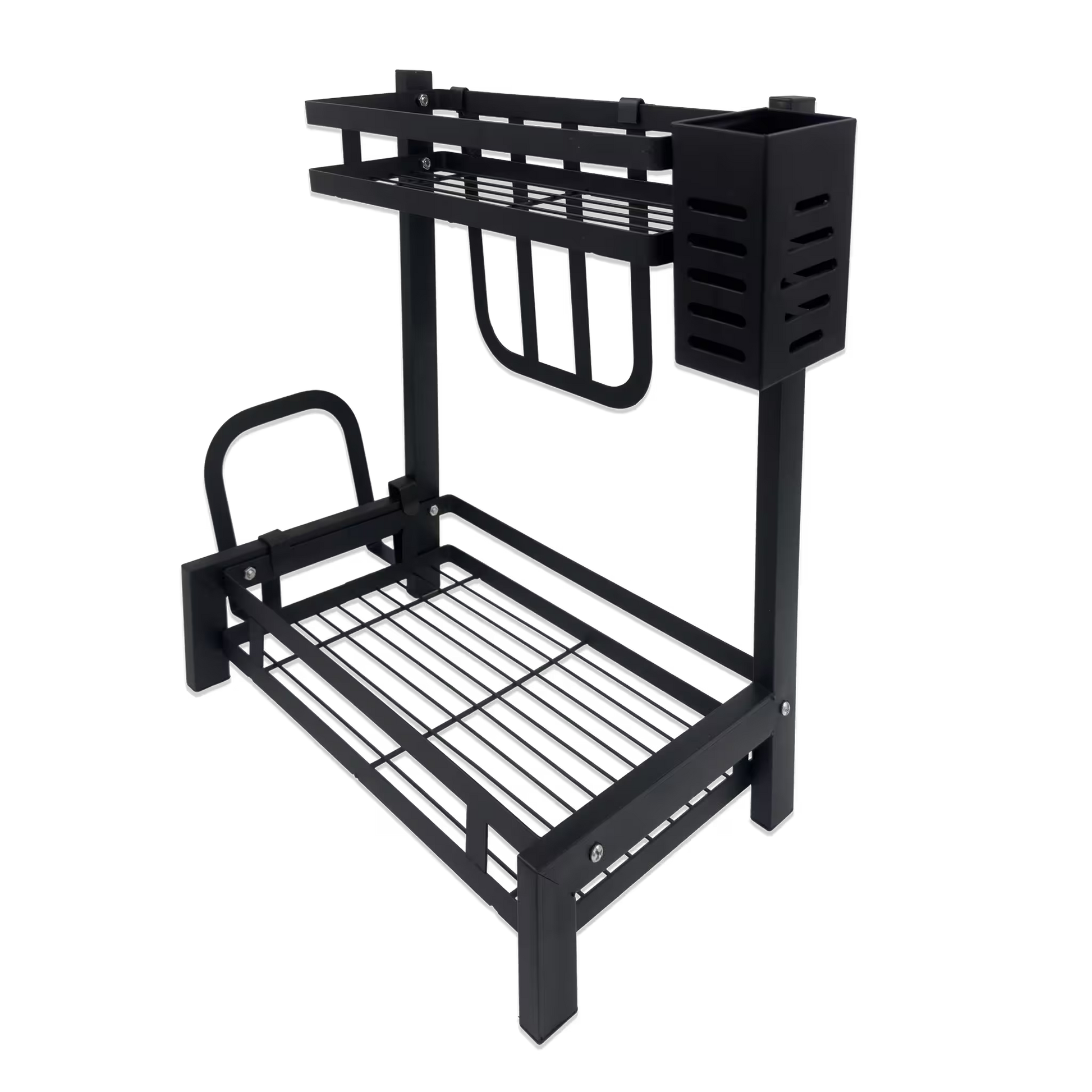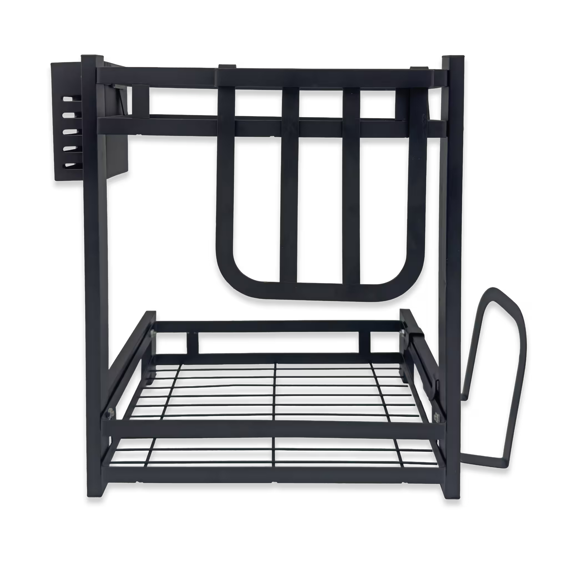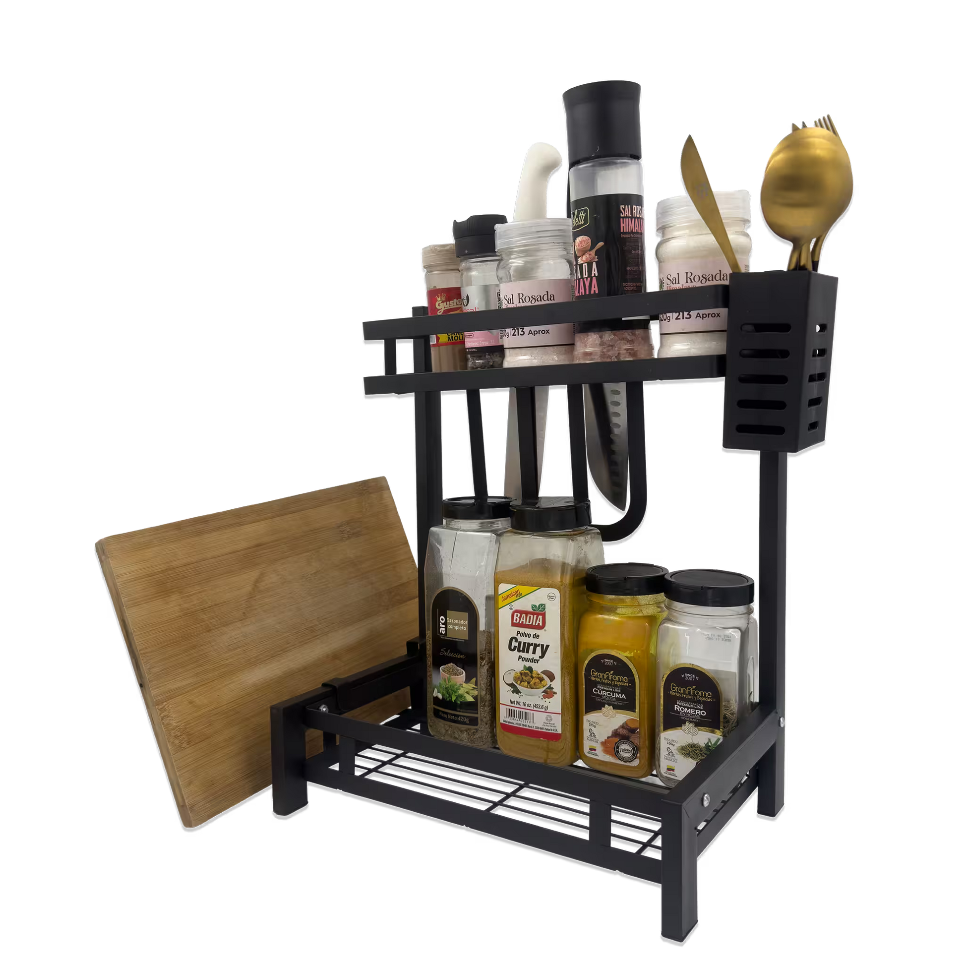 Gracias a su diseño multifuncional con dos niveles, cestas adicionales y ganchos, podrás organizar eficazmente el espacio cerca del mesón y mantener todo al alcance de tu mano.