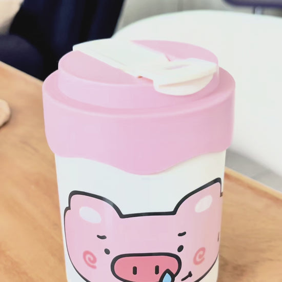 Termo con Diseño de Cerdito 300ml - Doble Función Pitillo y Directo