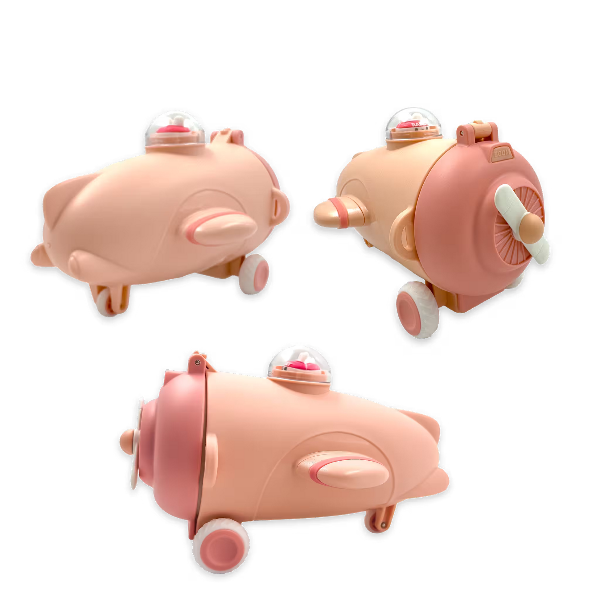 - Diseño: Avión con ruedas funcionales y hélice frontal