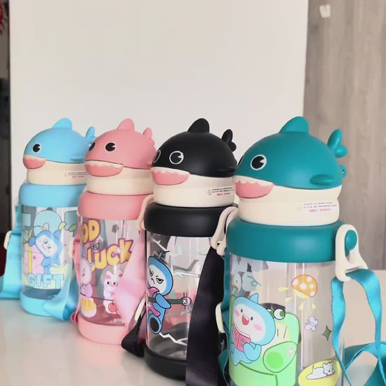 ¡La botella perfecta para que los niños se mantengan hidratados con estilo! Con su adorable diseño de tiburón, 4 colores vibrantes para elegir (Rosa, Negro, Azul y Verde), capacidad de 650ml, boquilla/pitillo integrado y materiales seguros de grado alimenticio. Práctica, linda y confiable para el colegio, paseos y uso diario.